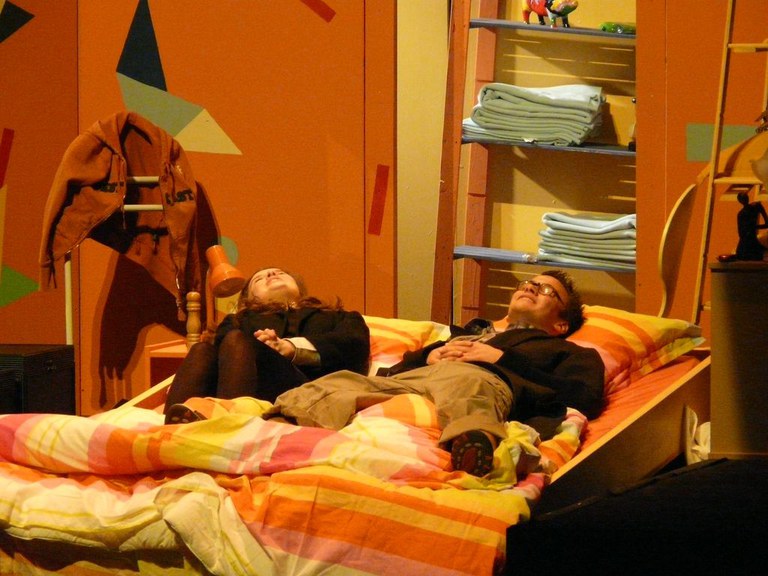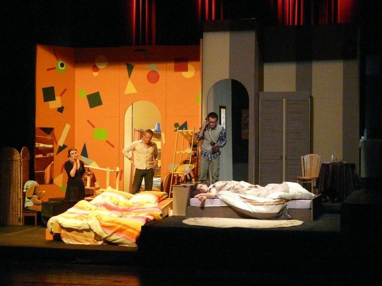3 lits pour 8 de Alain Ayckbourn Informations Dates des représentations: 16/01/2009 20:00 17/01/2009 20:00 18/01/2009 16:00 Lieu: Palace Metteur(s) en scène: Yves Dath Acteur(s): Bruno Destrebecq Murielle Bottequin Nicolas Deltour Antoine Dath Valérie Ravez Félix Teichmann Christine Cantraine Justine Lenelle Spectacle dans l'abonnement: oui Galerie 3 lits pour 8 — La Troupe du Huit 50 éléments précédents 1 2 3
