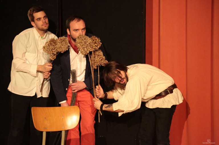 L'inédit de Molière de Marie-Hélène Ruiz Informations Dates des représentations: 15/04/2016 20:00 16/04/2016 20:00 17/04/2016 16:00 Lieu: Salle Léon Dubois (Académie) Metteur(s) en scène: Jean-François Massy Acteur(s): Nathan Leclercq Mathieu Coton Timothée Yannart Julie Endrenyi Pierre Durand Coline Devos Mathilde Parmentier Spectacle dans l'abonnement: non Galerie L'inédit de Molière — La Troupe du Huit 50 éléments précédents 1 2